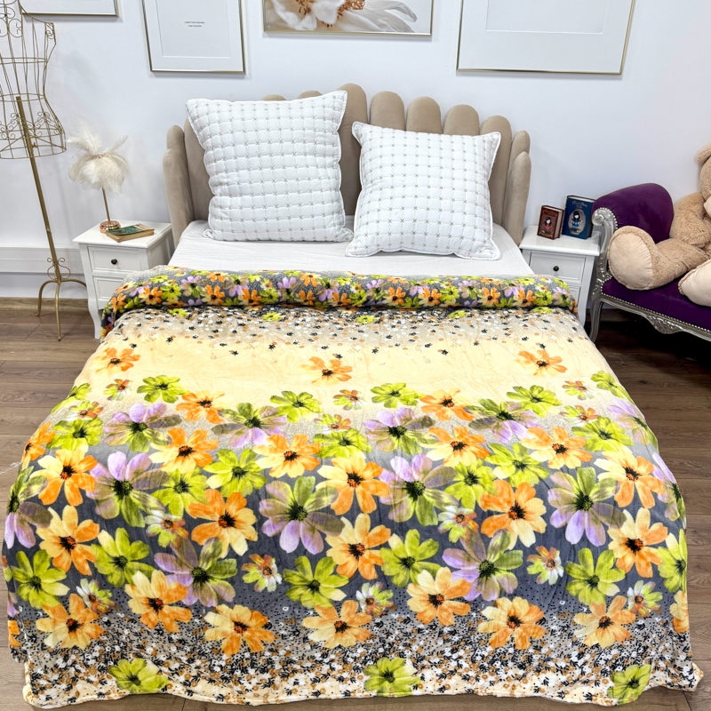 Patura pufoasa cocolino 200x230cm, 240g/mp, Bej, Flori