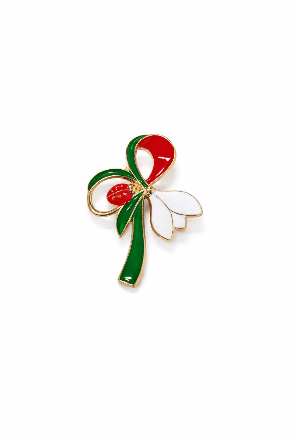 Brosa florala 5x5 cm cu buburuza si finisaj auriu, cadou primavara cu simbol natura