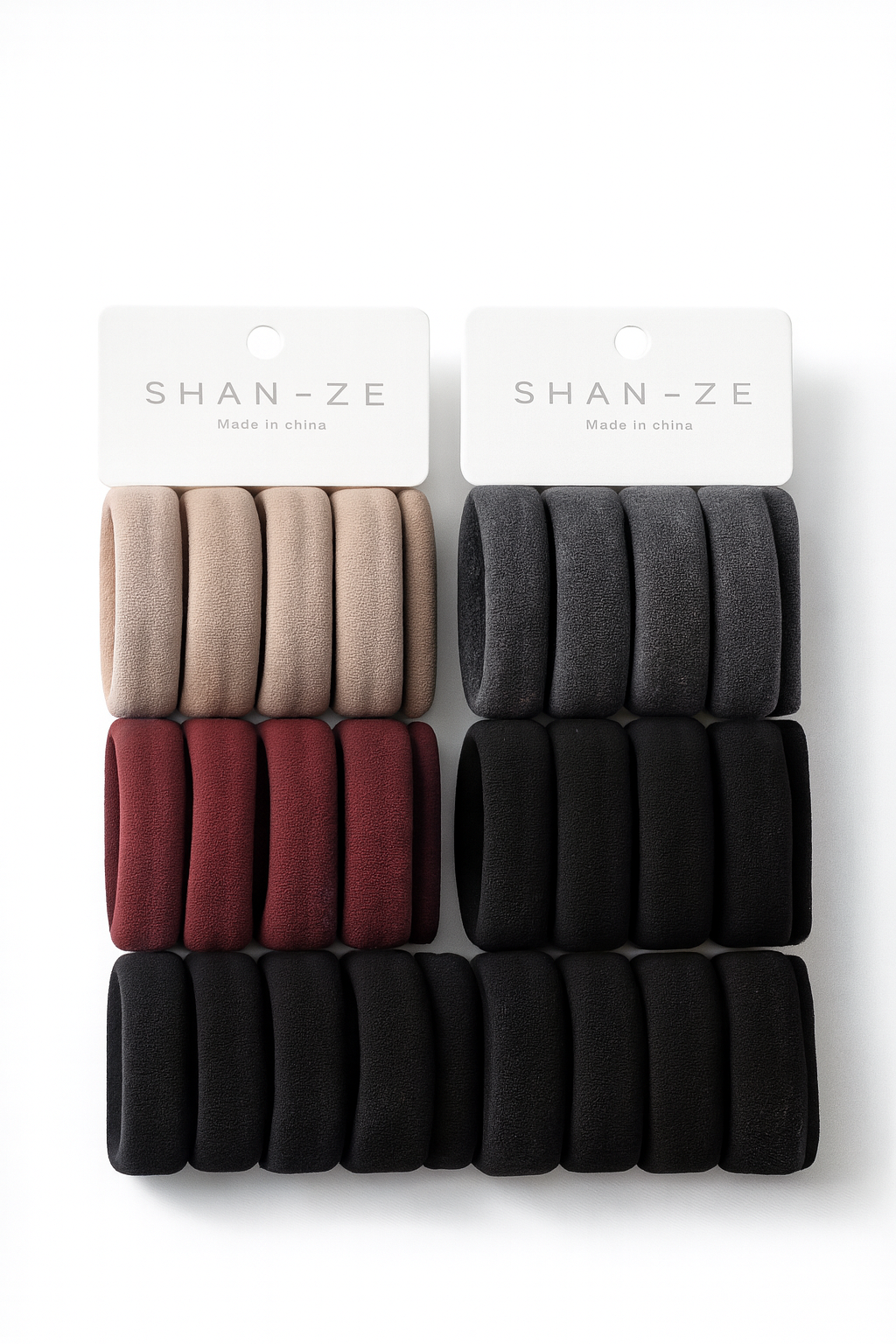 Set 12 elastice groase catifea par, culori mixte, 4 elastice pe card, rezistente