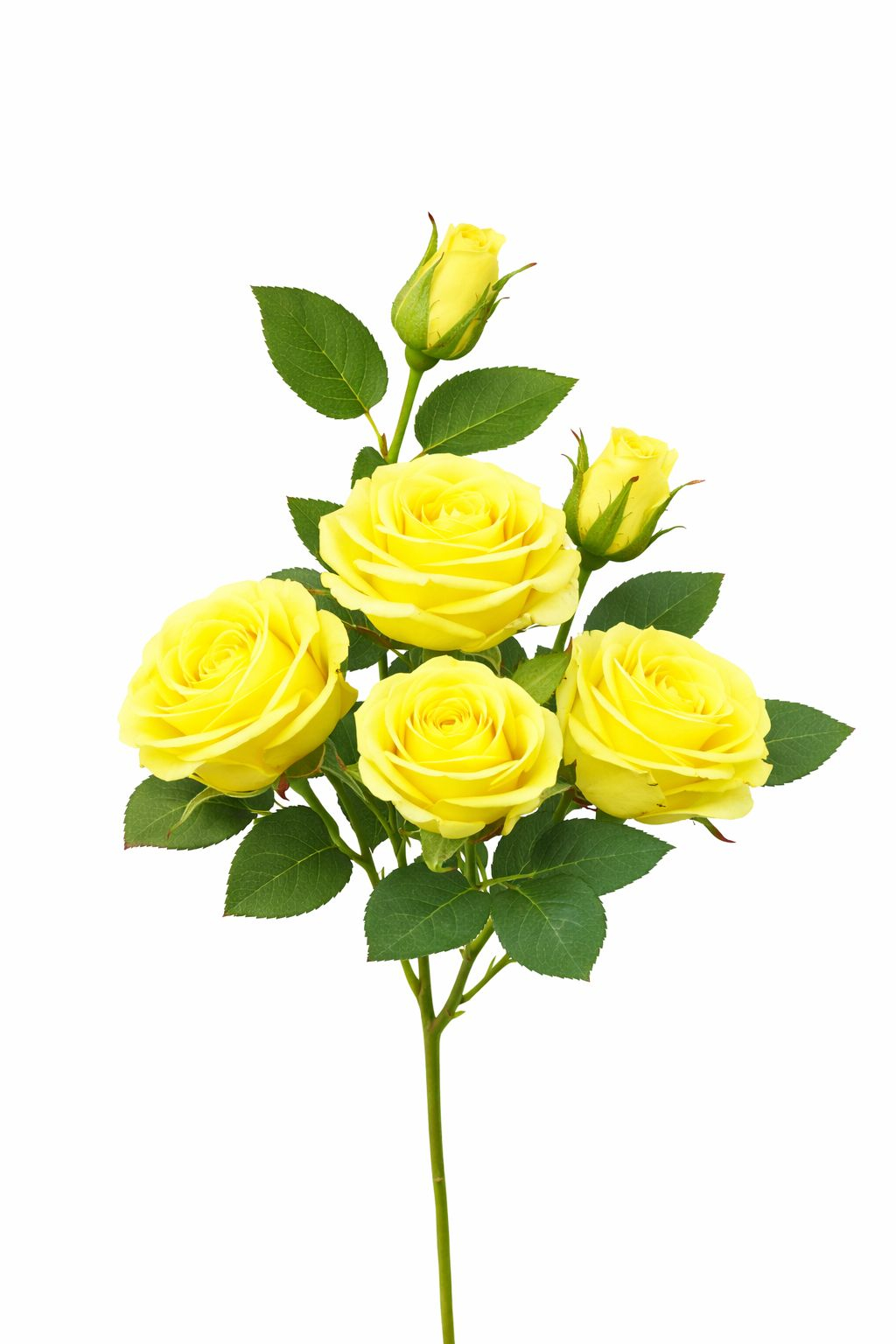 Set 3 trandafiri si 2 boboci galbeni, decorativi artificiali, 45 de cm