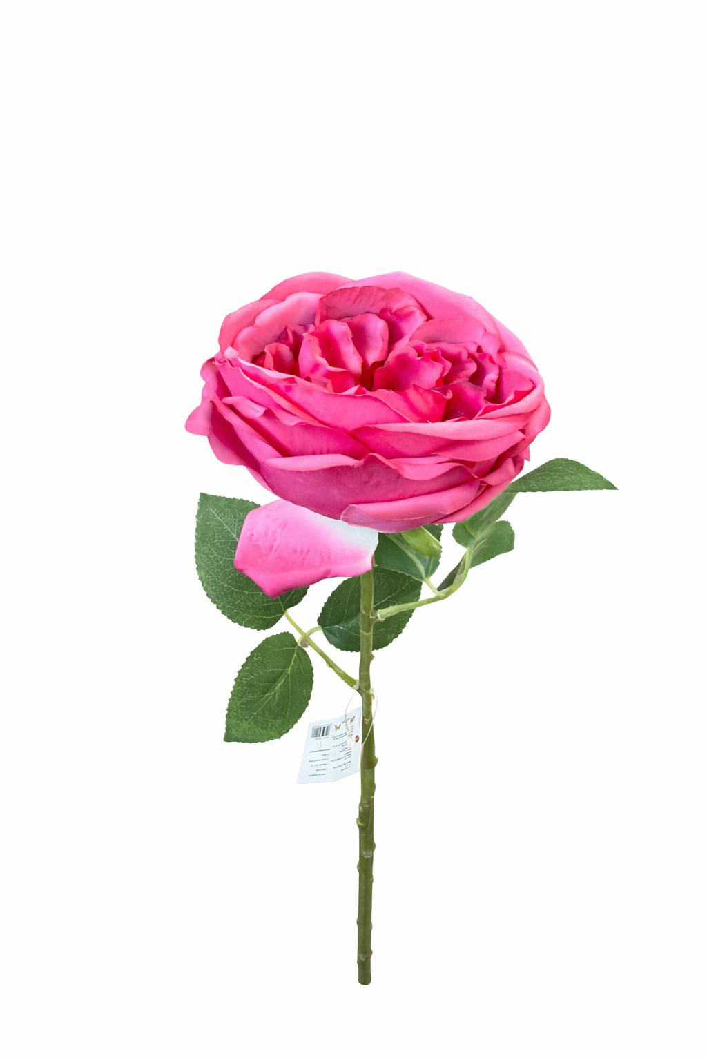 Trandafir artificial fucsia cu petale catifelate si frunze 46 cm calitate superioara