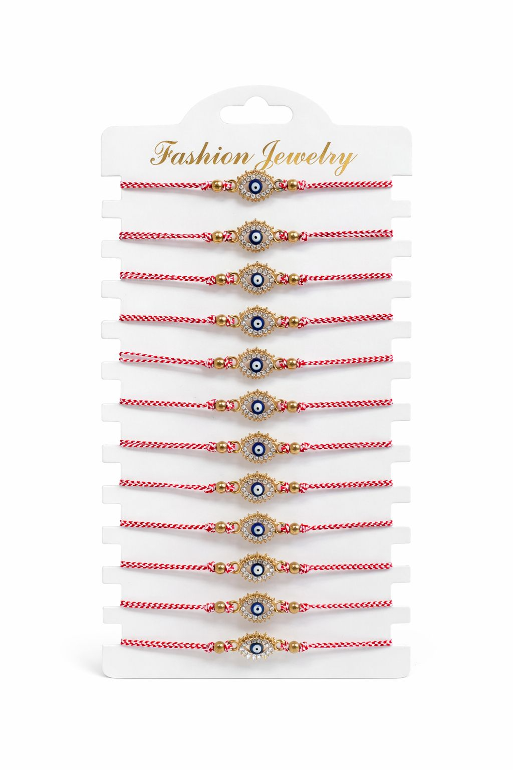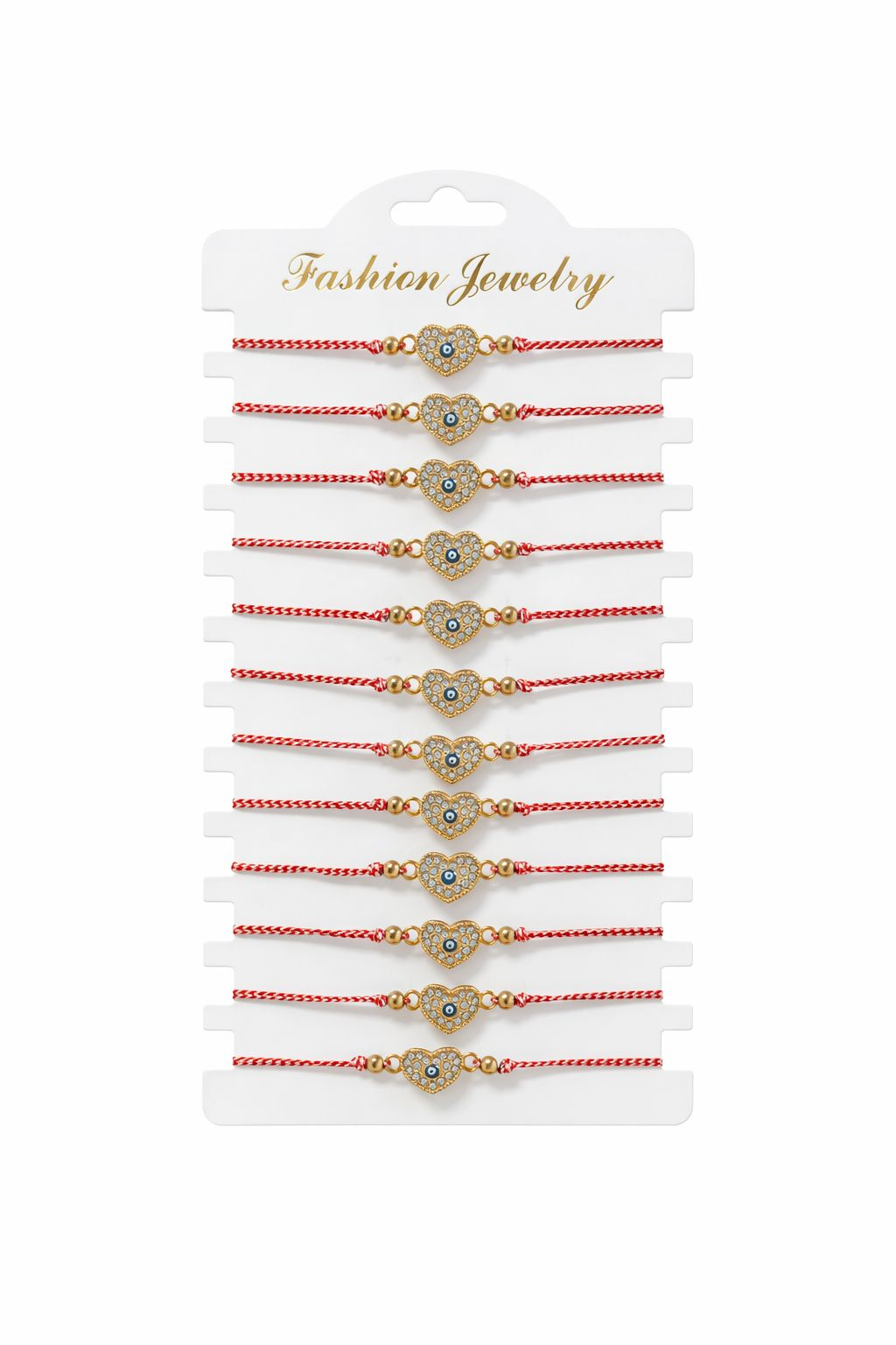 Set 12 bratari martisor inimioara aurie cu strasuri si ochisor protector
