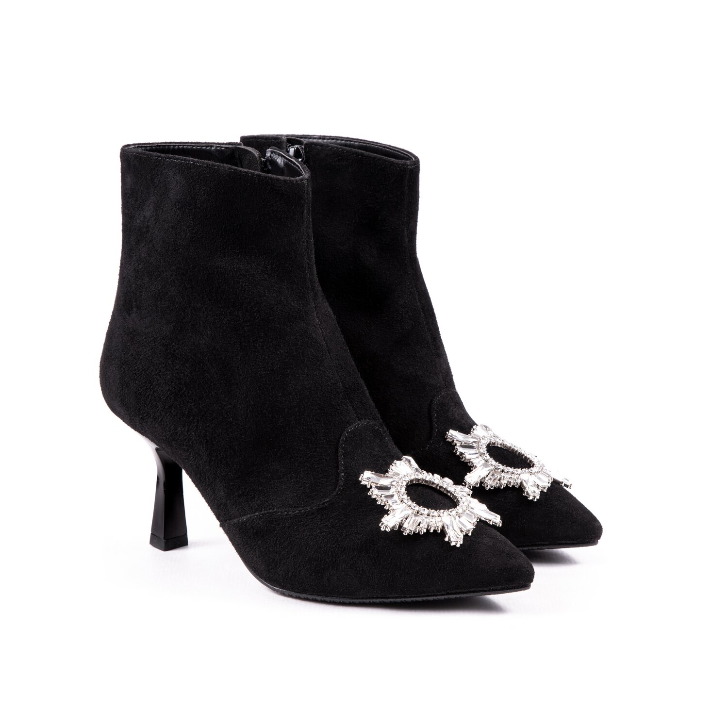 Sandale de ocazie piele intoarsa neagra Scarlet cu funda