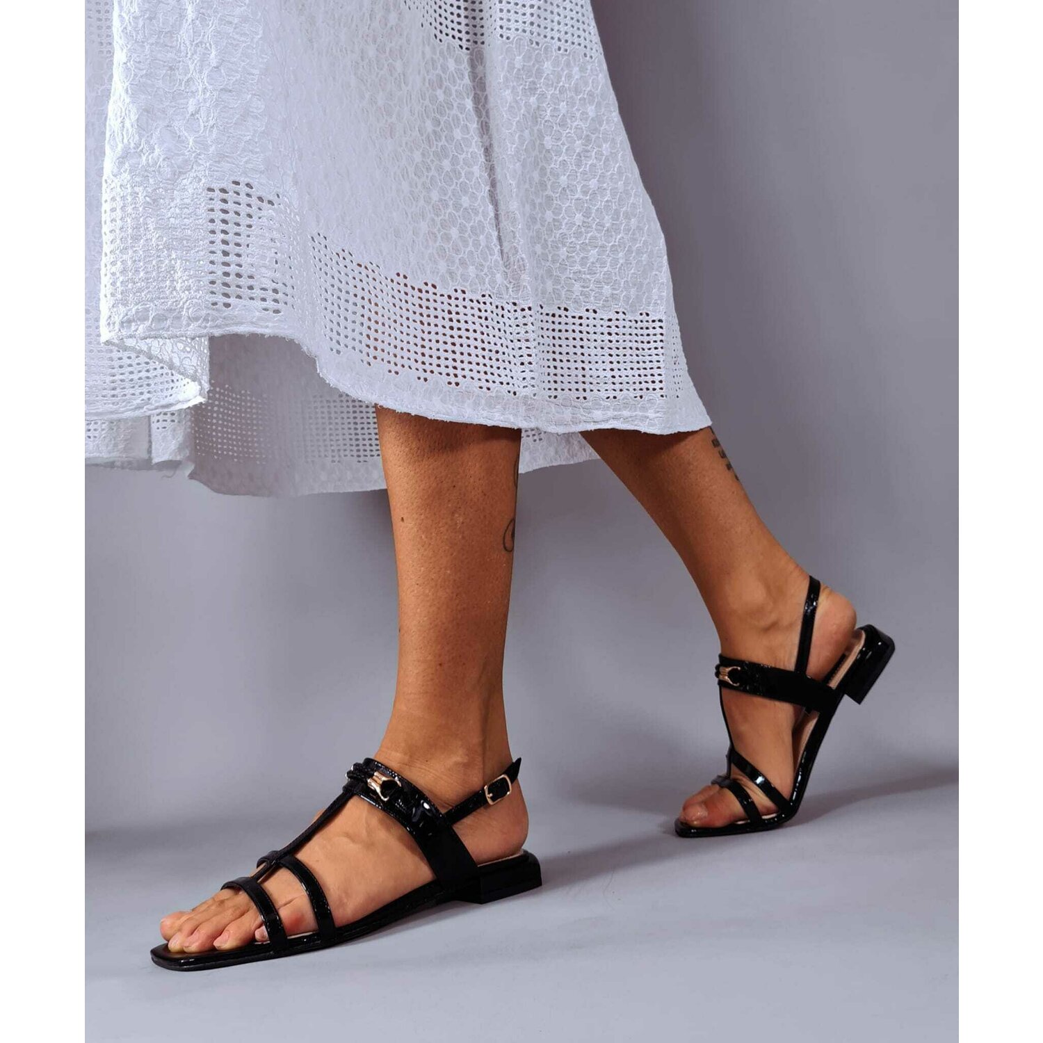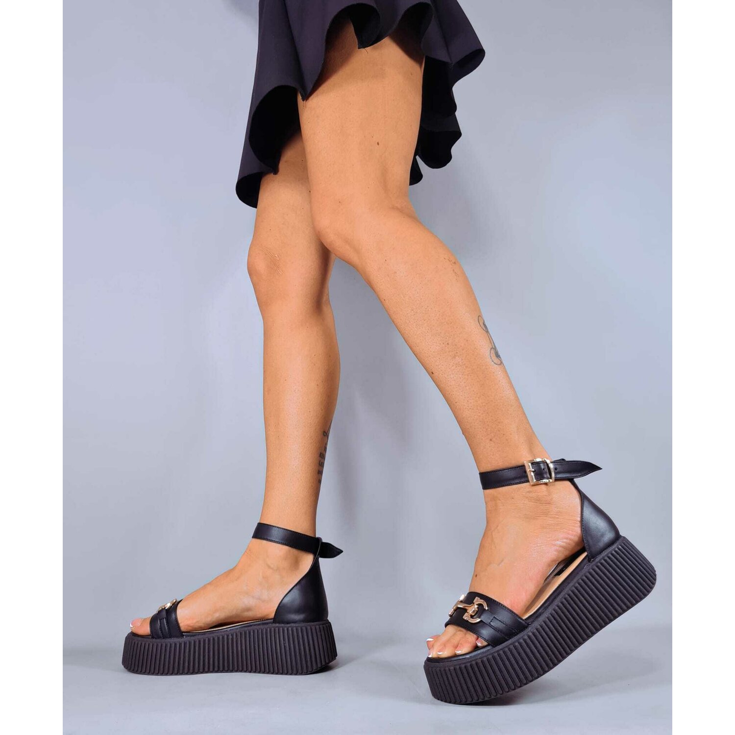 Sandale cu platou Piele Naturala lac negru Lavinia