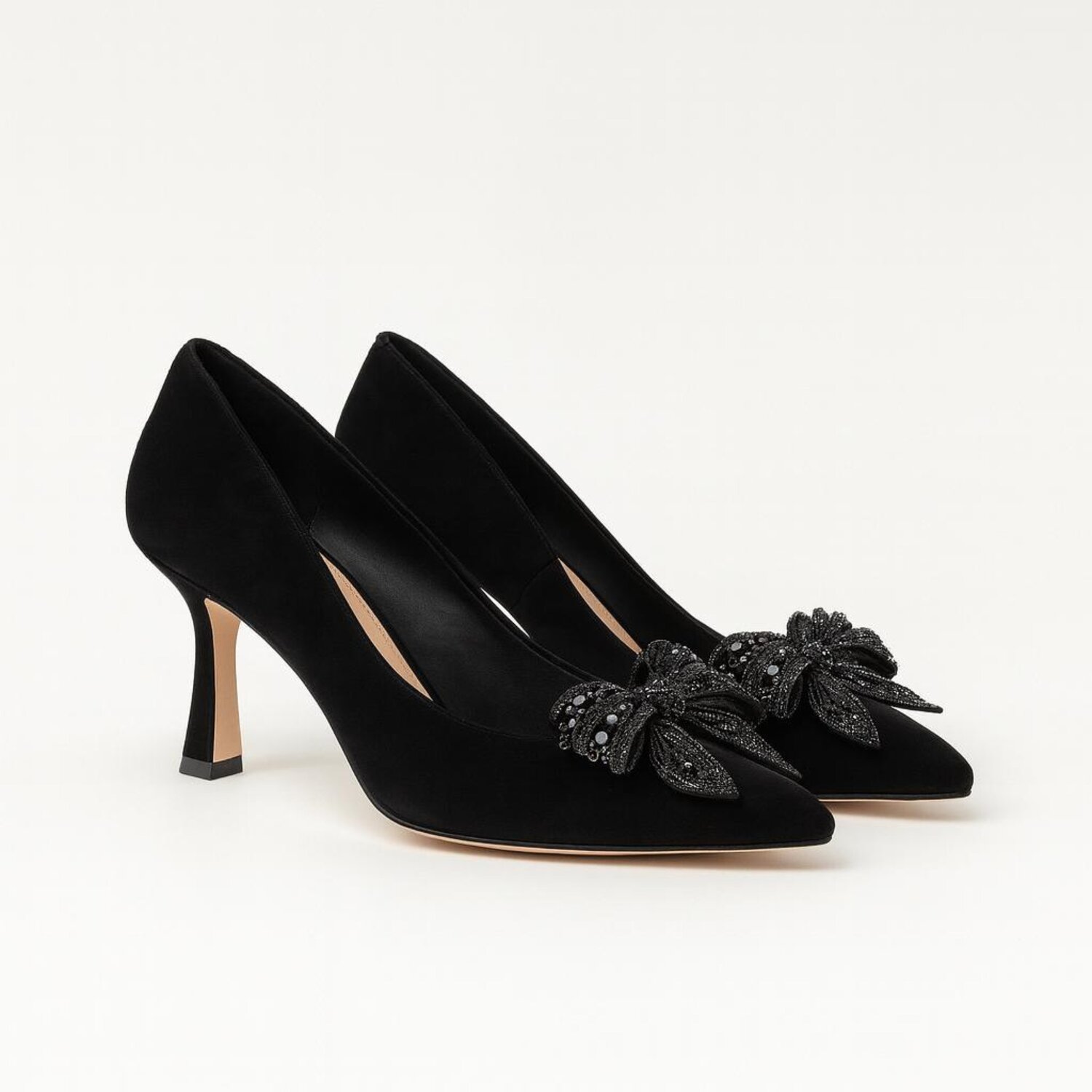 Botine dama Piele Naturala Negre camoscio cu funda Bow