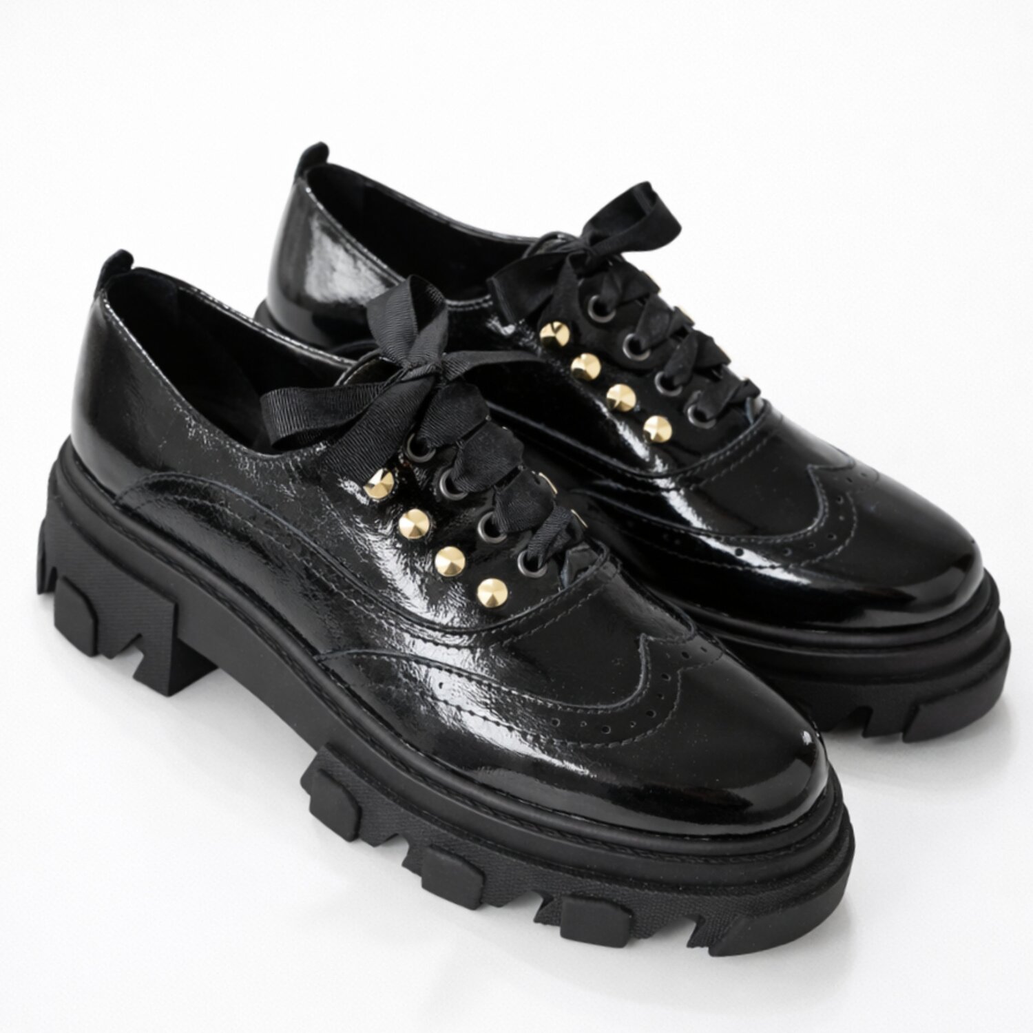 Pantofi casual Piele Naturala Negri cu capse Ayla