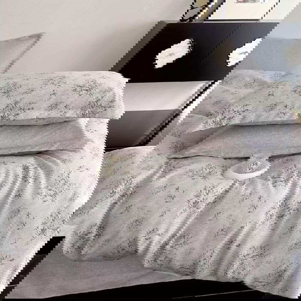 Lenjerie Finet 6 Piese cu Cearceaf Elastic - Gri cu Floricele - LFEZ_B016B