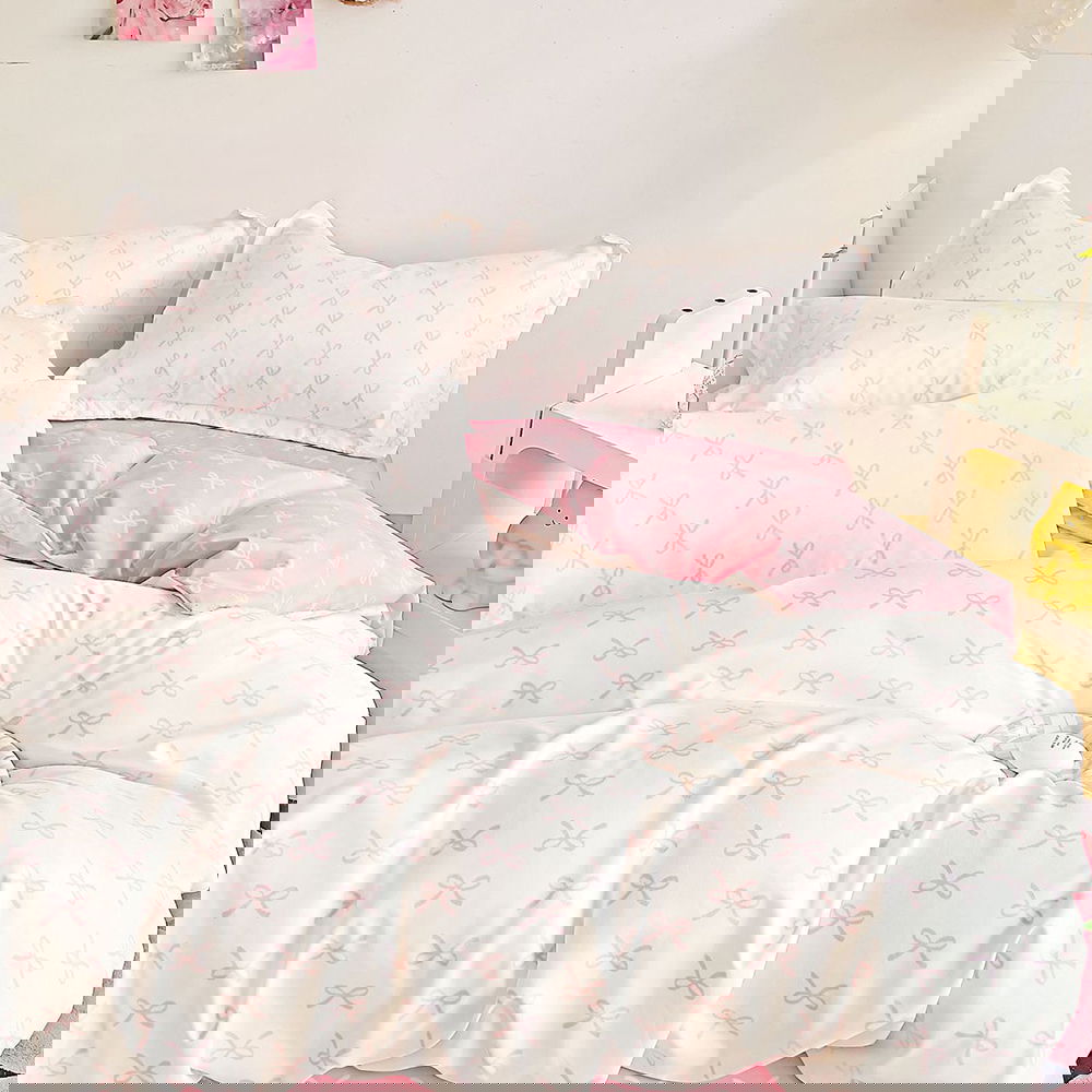 Lenjerie din Finet 90/120x200 - 4 Piese - Inimioare cu Fundite - LFSGS_E039B