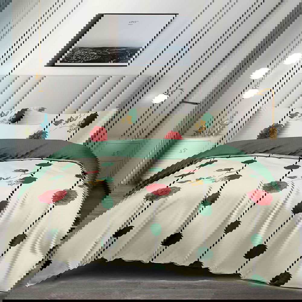 Lenjerie Bumbac Satinat 4 Piese - Camp cu Flori - LBDP_G118