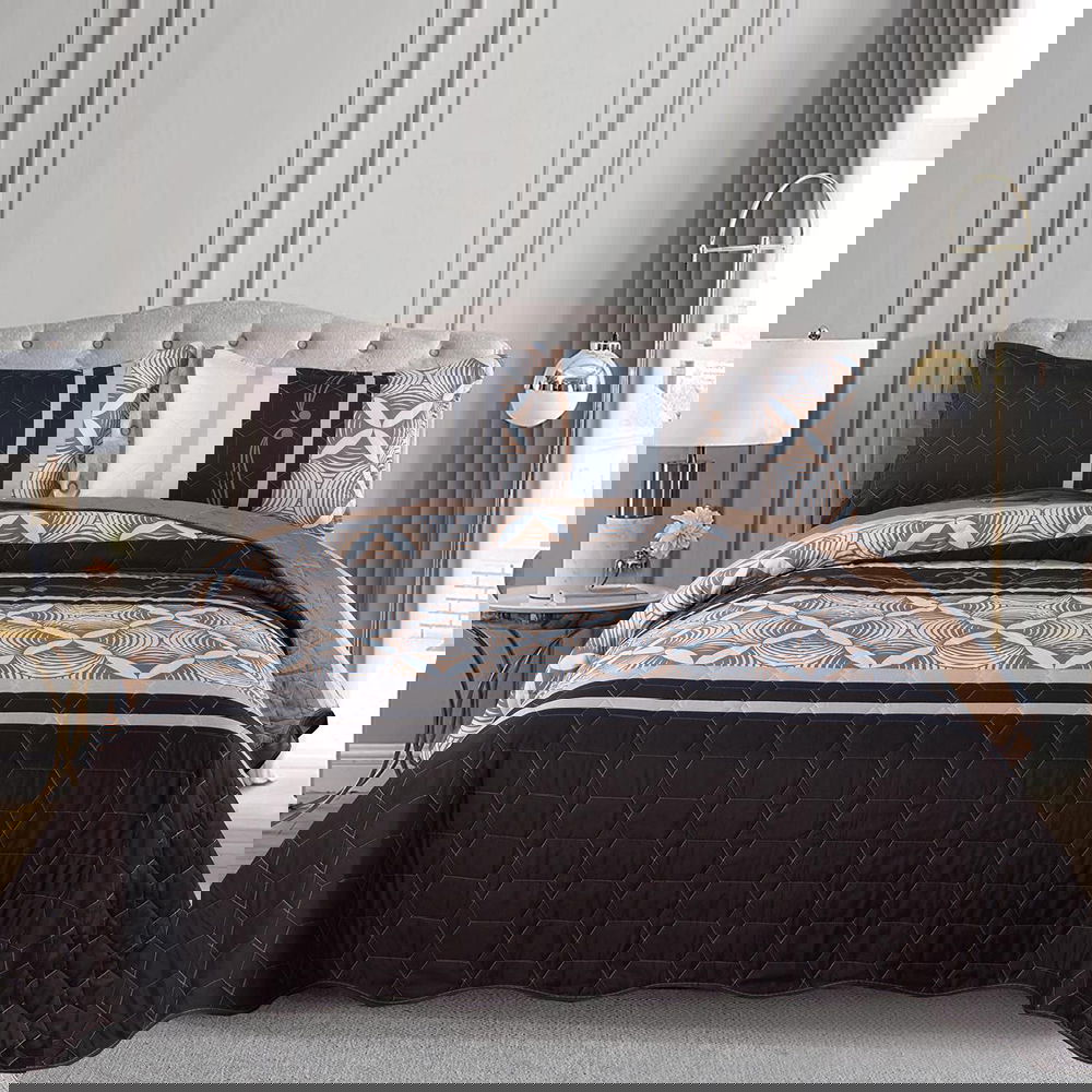 Set 3 Piese Cuvertura de Pat din Bumbac Satinat + 2 Fete de Perna 54x75 cm - Imprimeu Maro - CVBS_M132B
