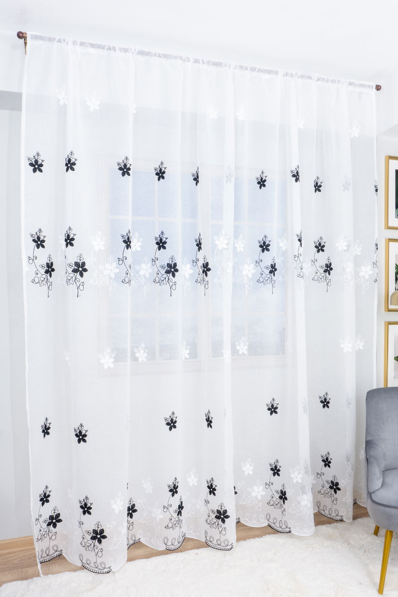 Perdea Flora din In Negru Regal 300x240cm cu Rejansa - PERD030E_300x240_ATL