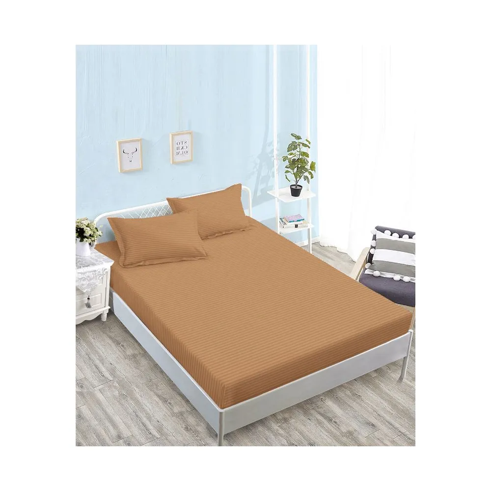 Husa de Pat + 2 Fete de Perna Bumbac Damasc, Maro Deschis - XIA191