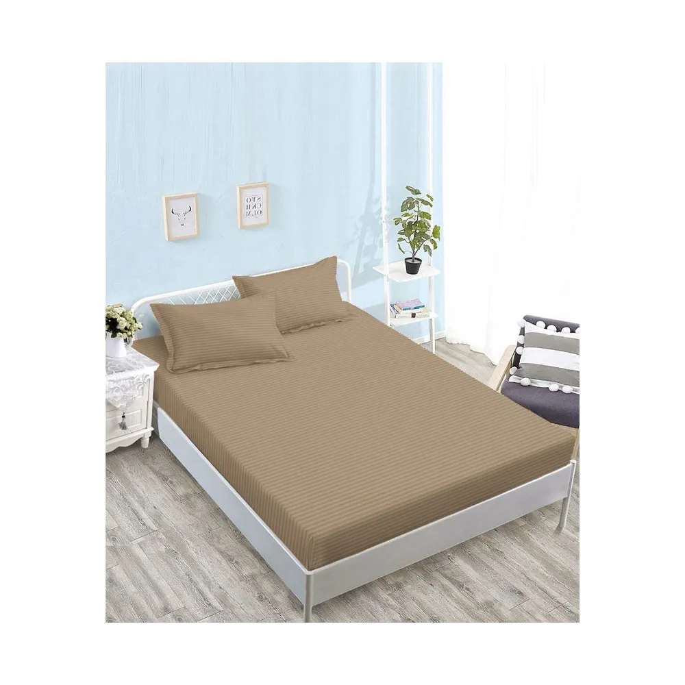 Husa de Pat + 2 Fete de Perna Bumbac Damasc, Bej Inchis - XIA192