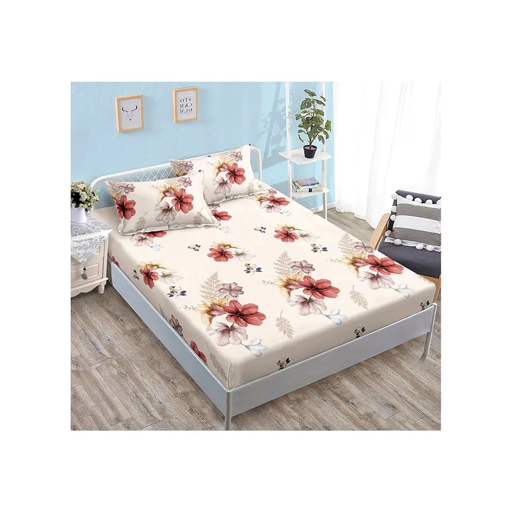 Husa de Pat + 2 Fete de Perna Bumbac Damasc, Crem - XIA189