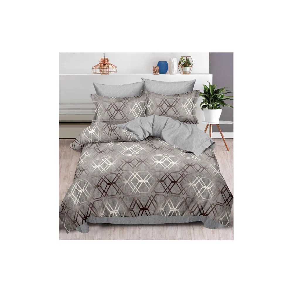 Lenjerie de Pat Dublu Bumbac FINET, 6 Piese , Model Geometric - ION37