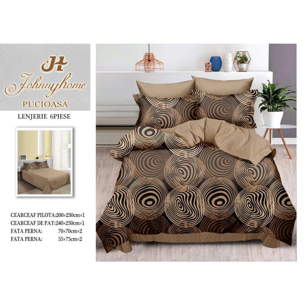 Lenjerie de Pat, Bumbac Finet, 6 Piese, Pat Dublu -JO41