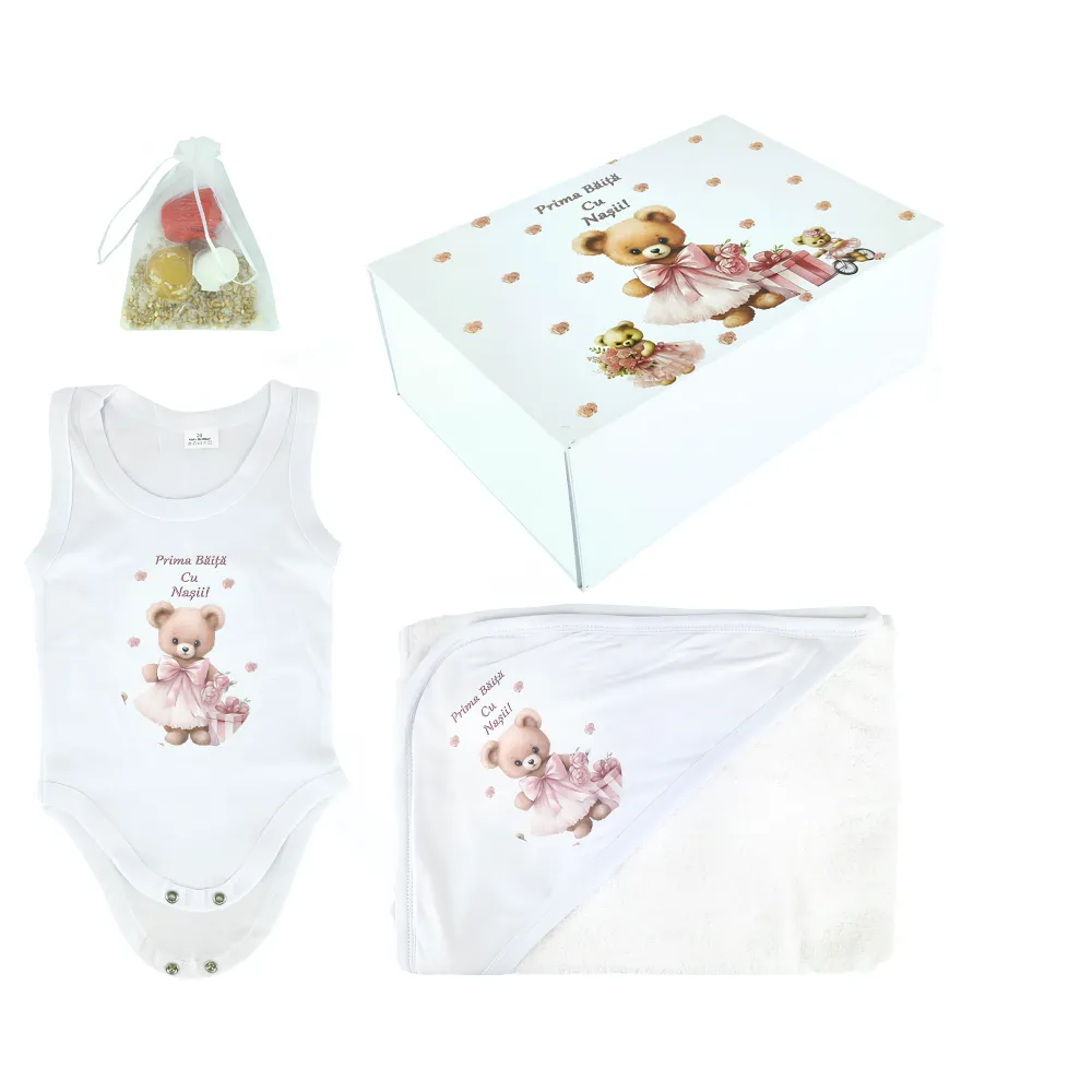 Trusou Prima Baita, Personalizat cu Mesaj Prima Baita cu Nasii Ursulet Roz de Plus - TPB40