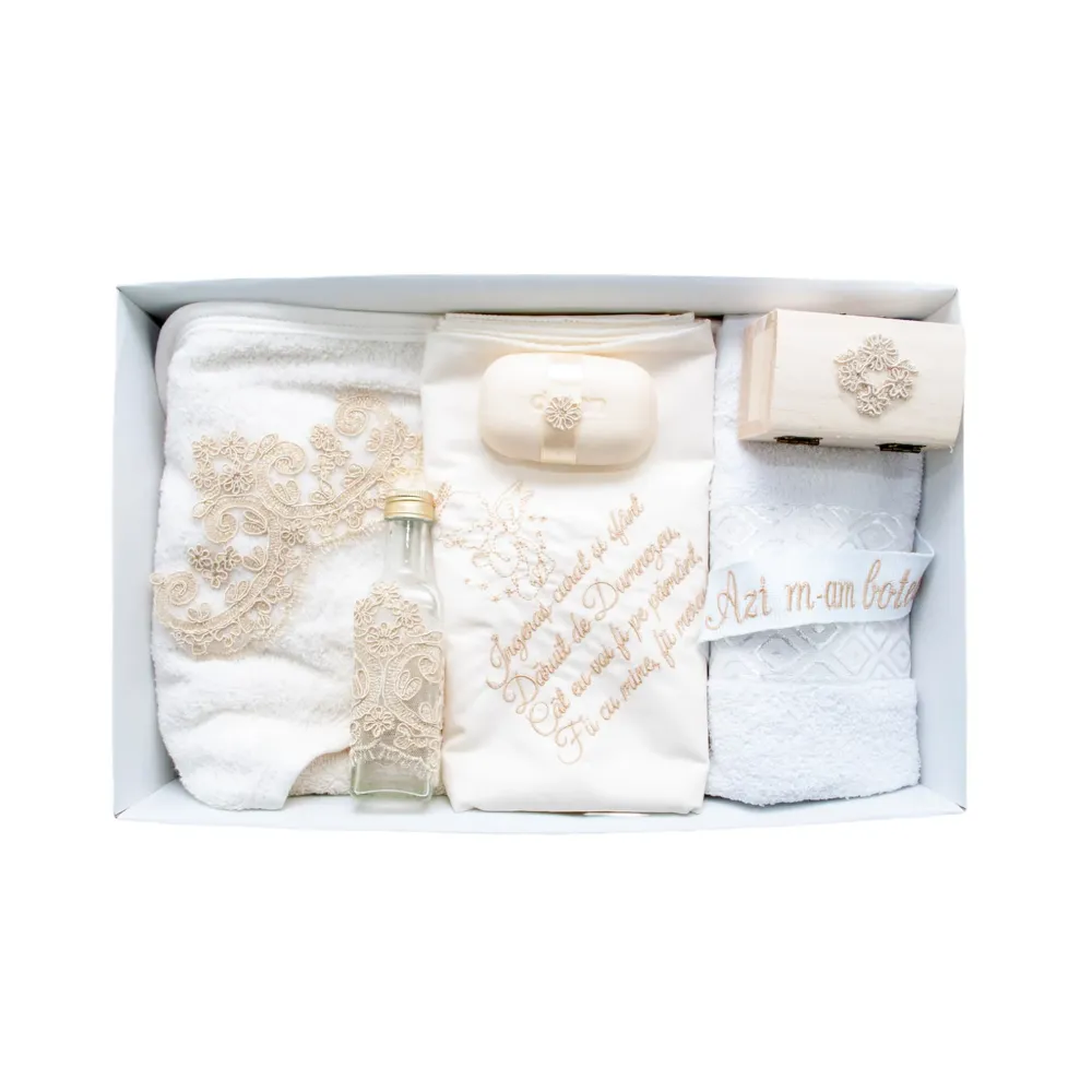 Trusou Botez, 7 Piese, cu Broderie Azi m-am crestinat, Crem - TB172