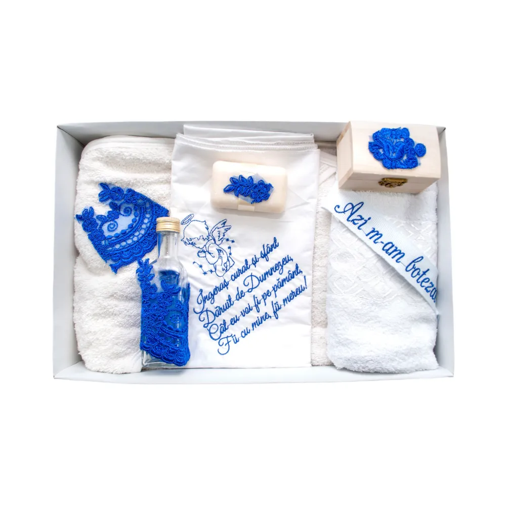 Trusou Botez, 7 Piese, cu Broderie Azi m-am crestinat, Albastru - TB174