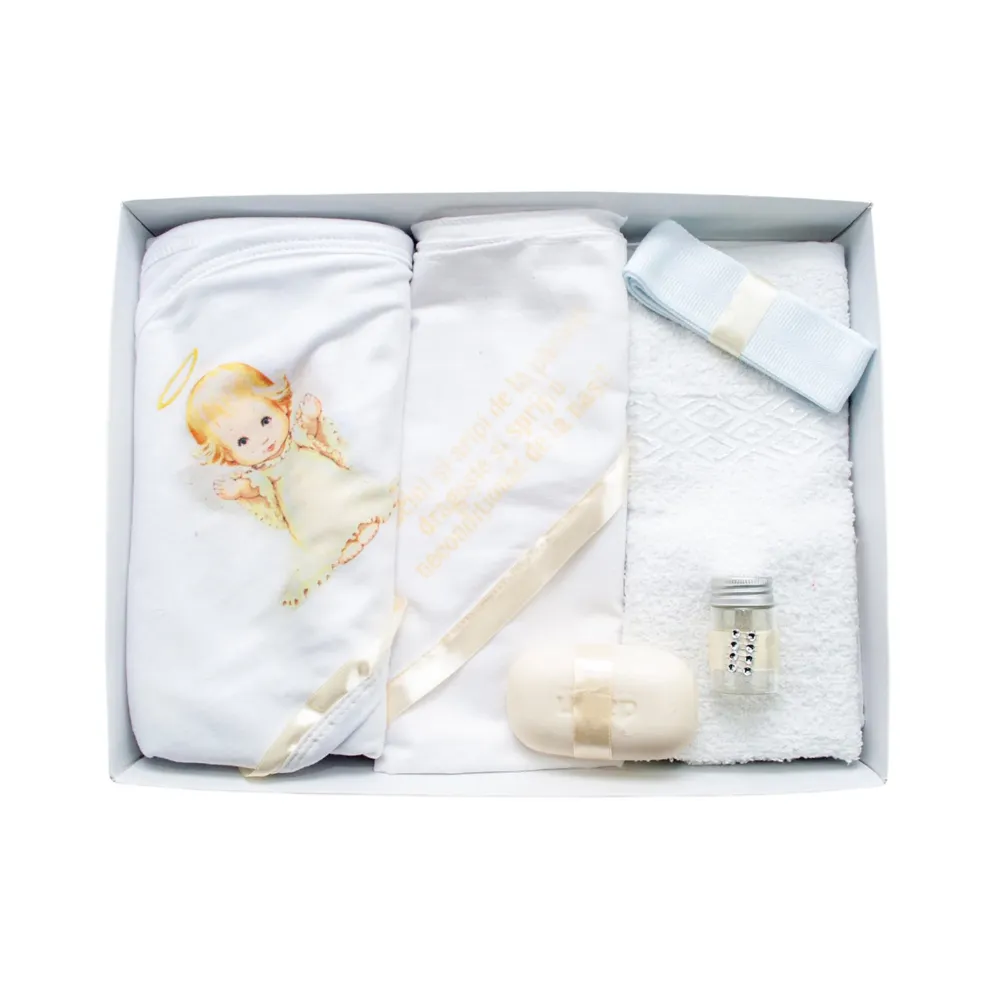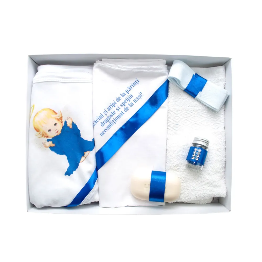 Trusou Botez, 6 Piese cu Text Imprimat Radacini si aripi, Albastru, Inger- TB168