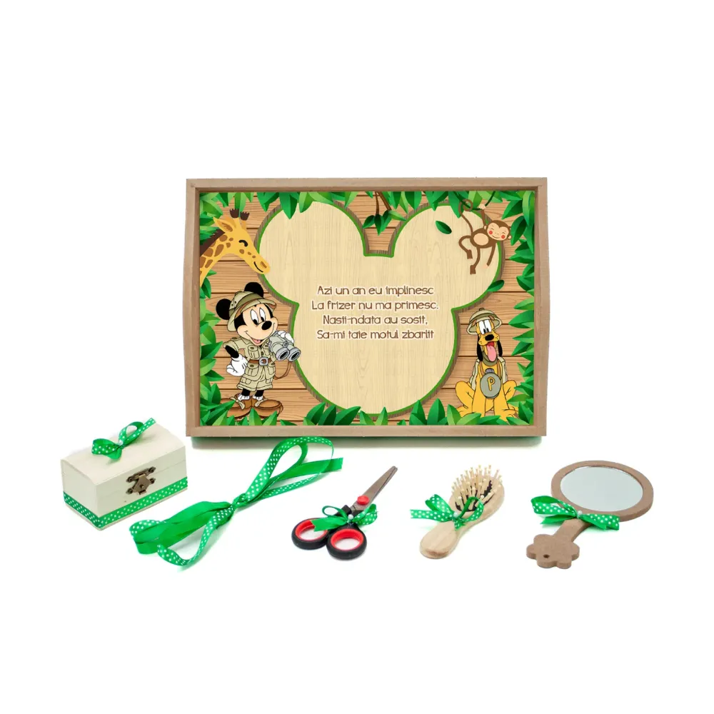 Set Cutie Trusou cu Lumanare, 9 Piese, Cu drag de la nasi, Verde Inchis, Safari Animale - TB184