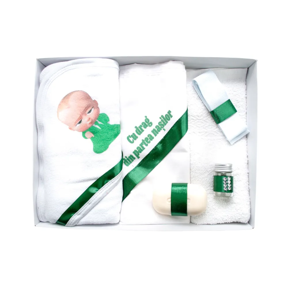 Trusou Botez 6 Piese Personalizat cu Broderie - Cu drag din partea nasilor, Verde, Baby Boss - TB176