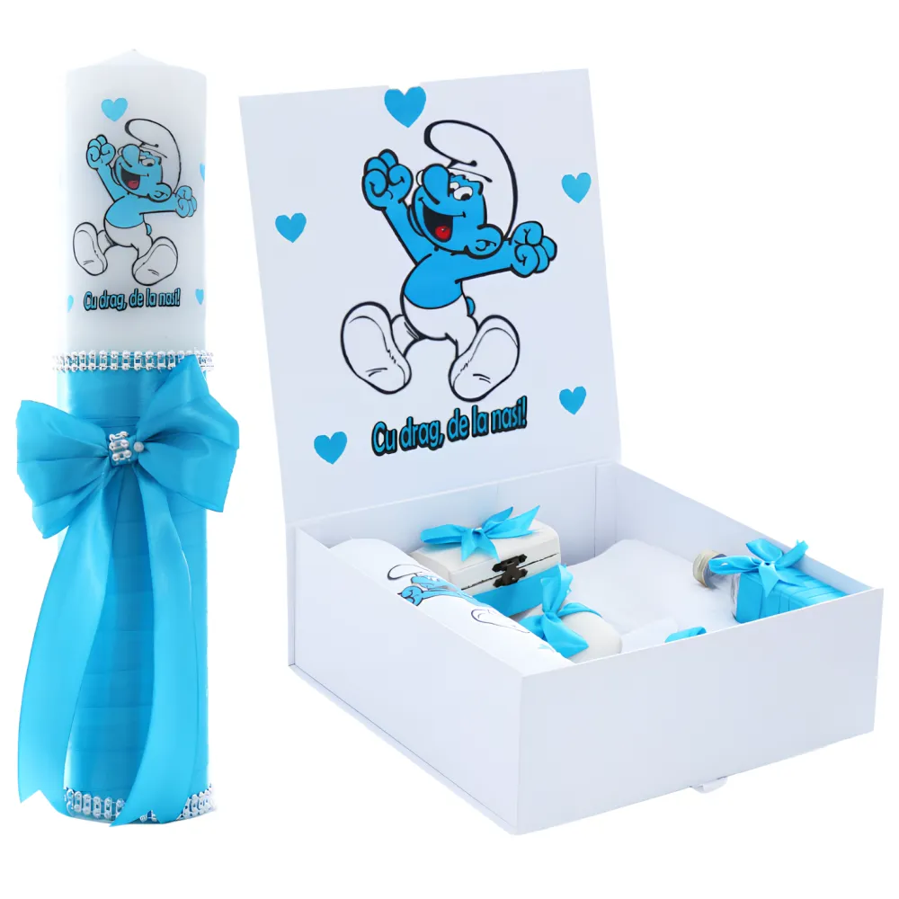 Set Cutie Trusou cu Lumanare, 9 Piese, Cu drag de la nasi, Turcoaz, Strumf - TB189