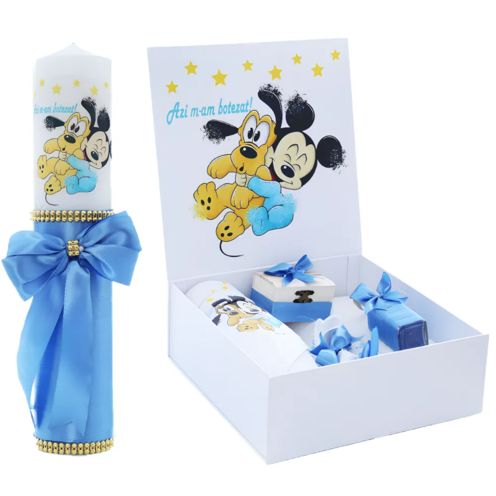 Set Cutie Trusou cu Lumanare, 9 Piese, Azi m-am botezat, Bleu, Mickey Mouse - TB192