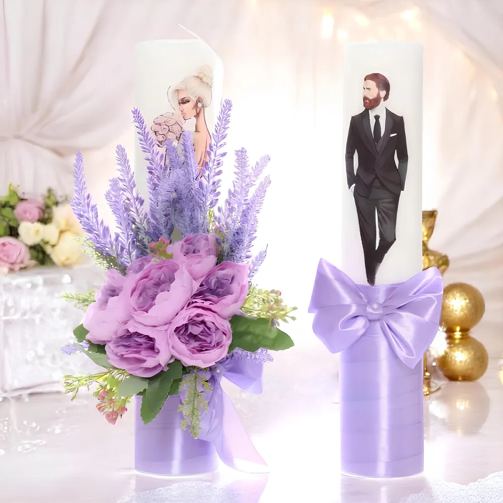 Set 2 Lumanari pentru Nunta cu flori artificiale LILA - LN03