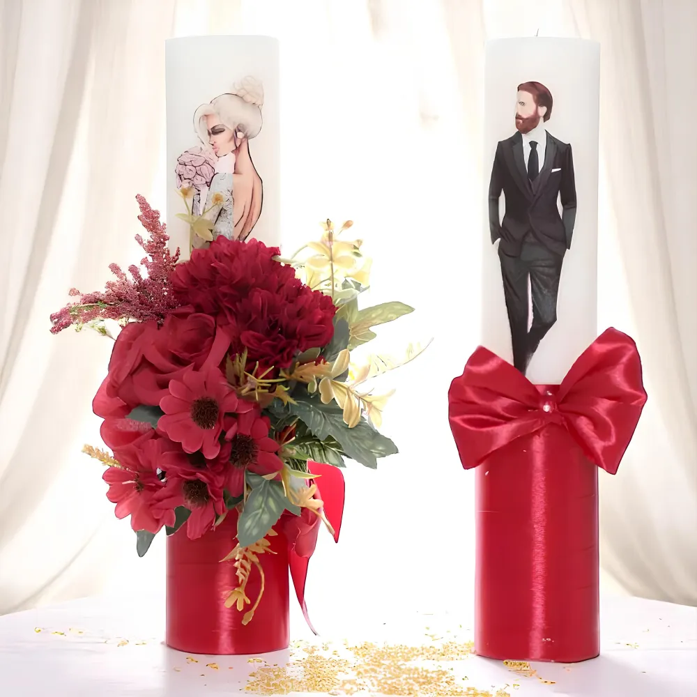 Set 2 Lumanari pentru Nunta cu flori artificiale VISINIU - LN05