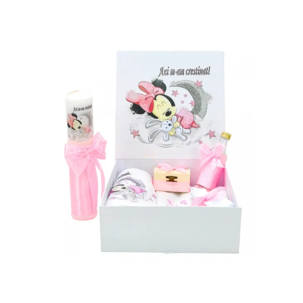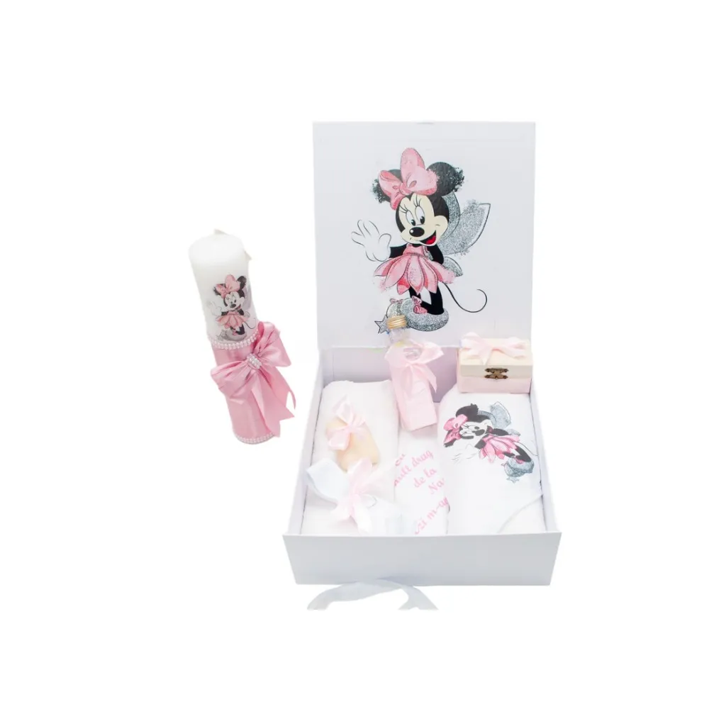 Set Cutie Trusou cu Lumanare, 9 Piese Cu drag de la nasi - Baby Minnie, Roz - TB199