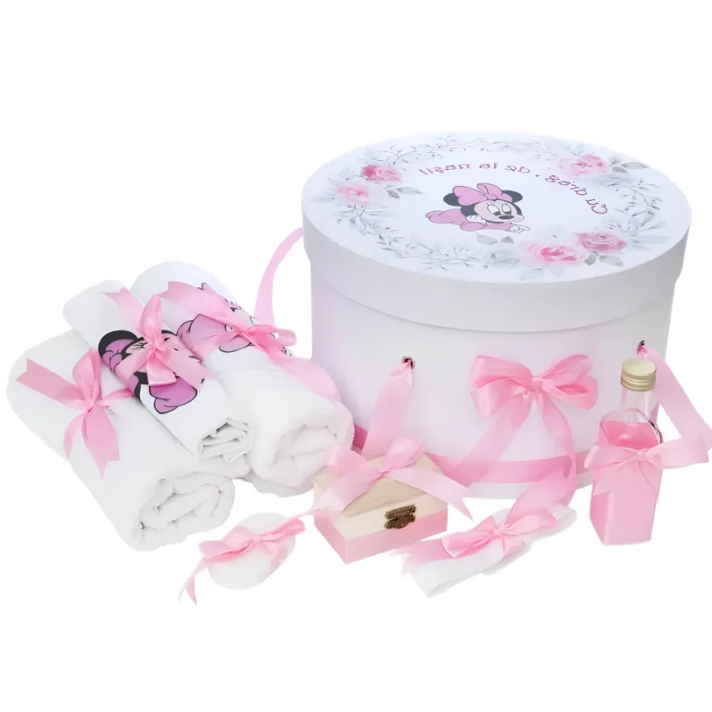 Cutie Transport Trusou Botez, Model Minnie Mouse Roz cu Fluturi - CTB02