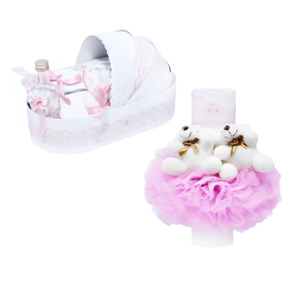 Set Trusou Botez, 8 Piese, Roz Pudra, Ursulet - TB214