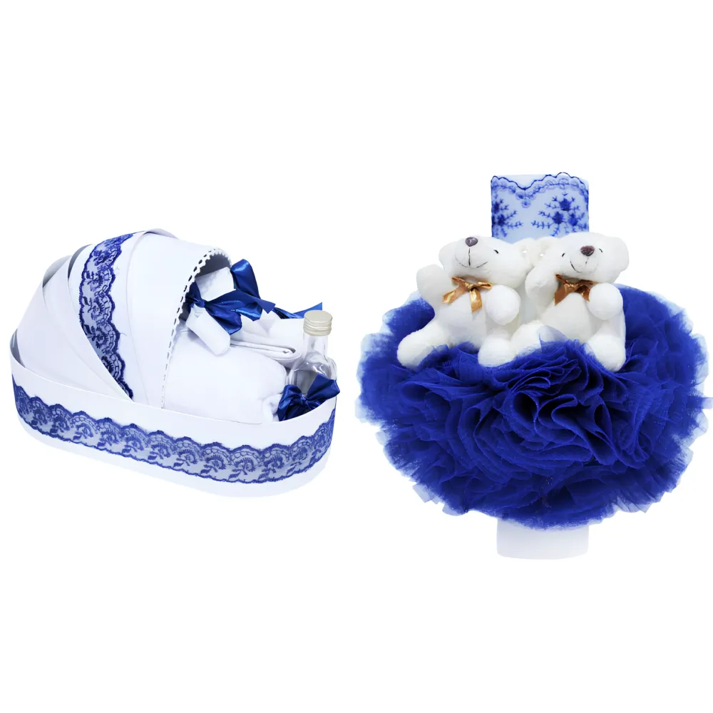 Set Trusou Botez cu Lumarare, 7 Piese, Azi m-am crestinat, Alb-Bleumarin - TBL22