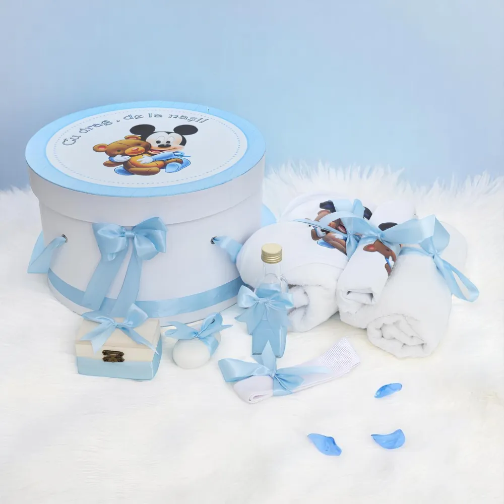 Trusou Botez cu 8 Piese Imprimat, Mickey Mouse, Culoare Albastru - TB213