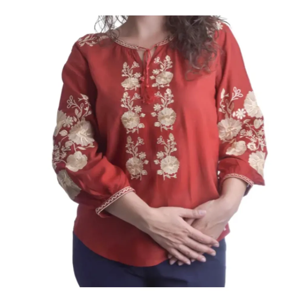 Bluza Traditionala Neagra cu Motiv Floral Multicolor - BMG187