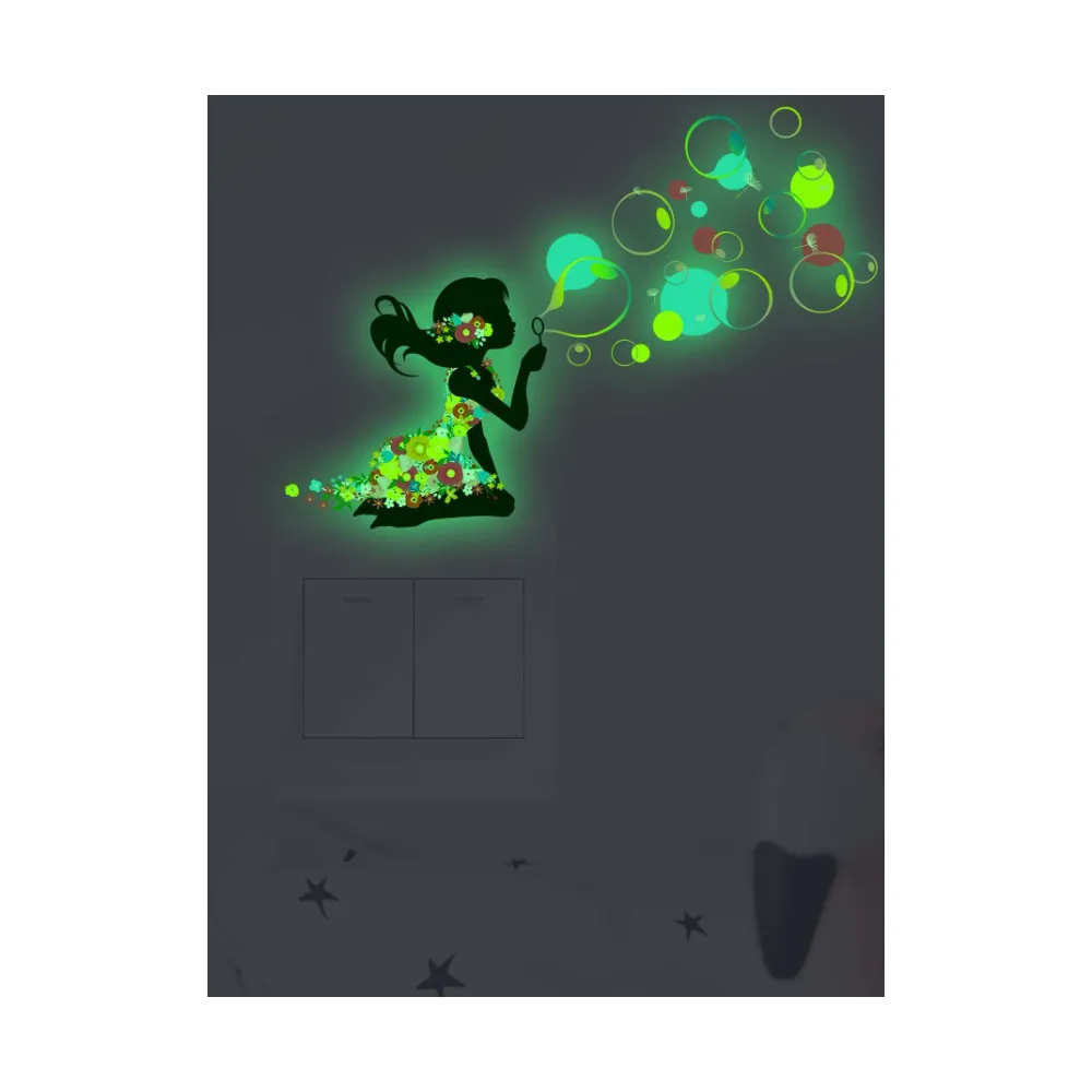 Sticker Perete Autocolant Fosforescent Fetita si Baloane 16x22cm - 21220