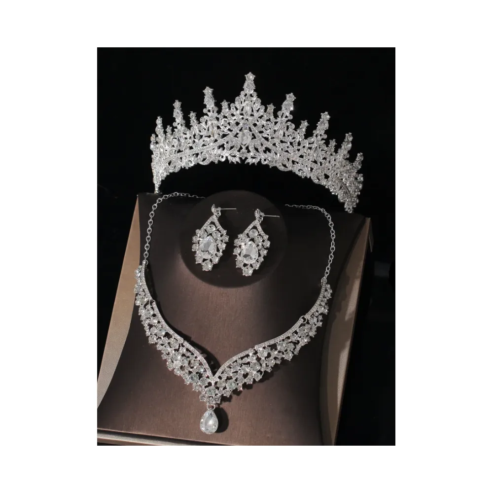Set Accesorii Mireasa, Coronita cu Strasuri, Colier si Cercei - 91009
