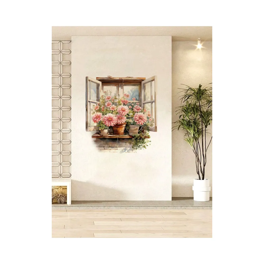 Sticker Perete Autocolant Flori in Ghiveci la Fereastra - 066654