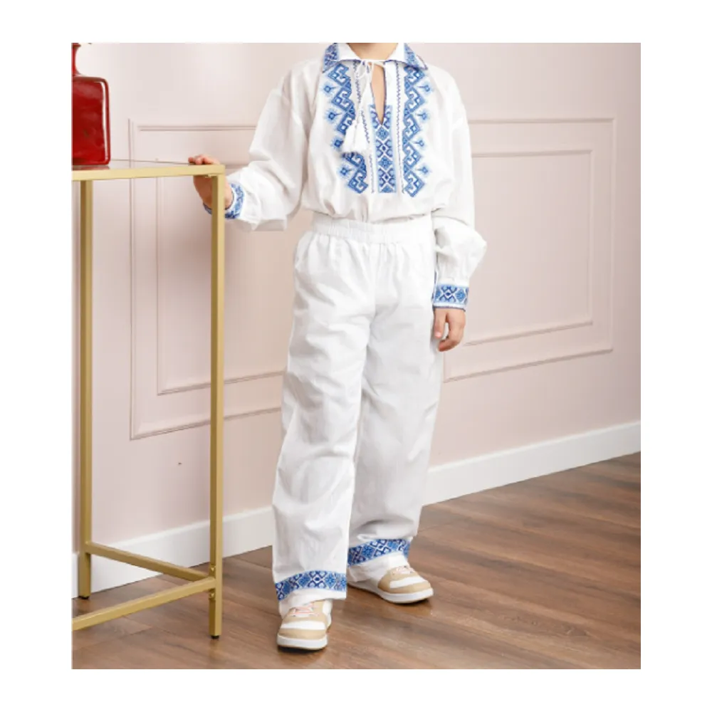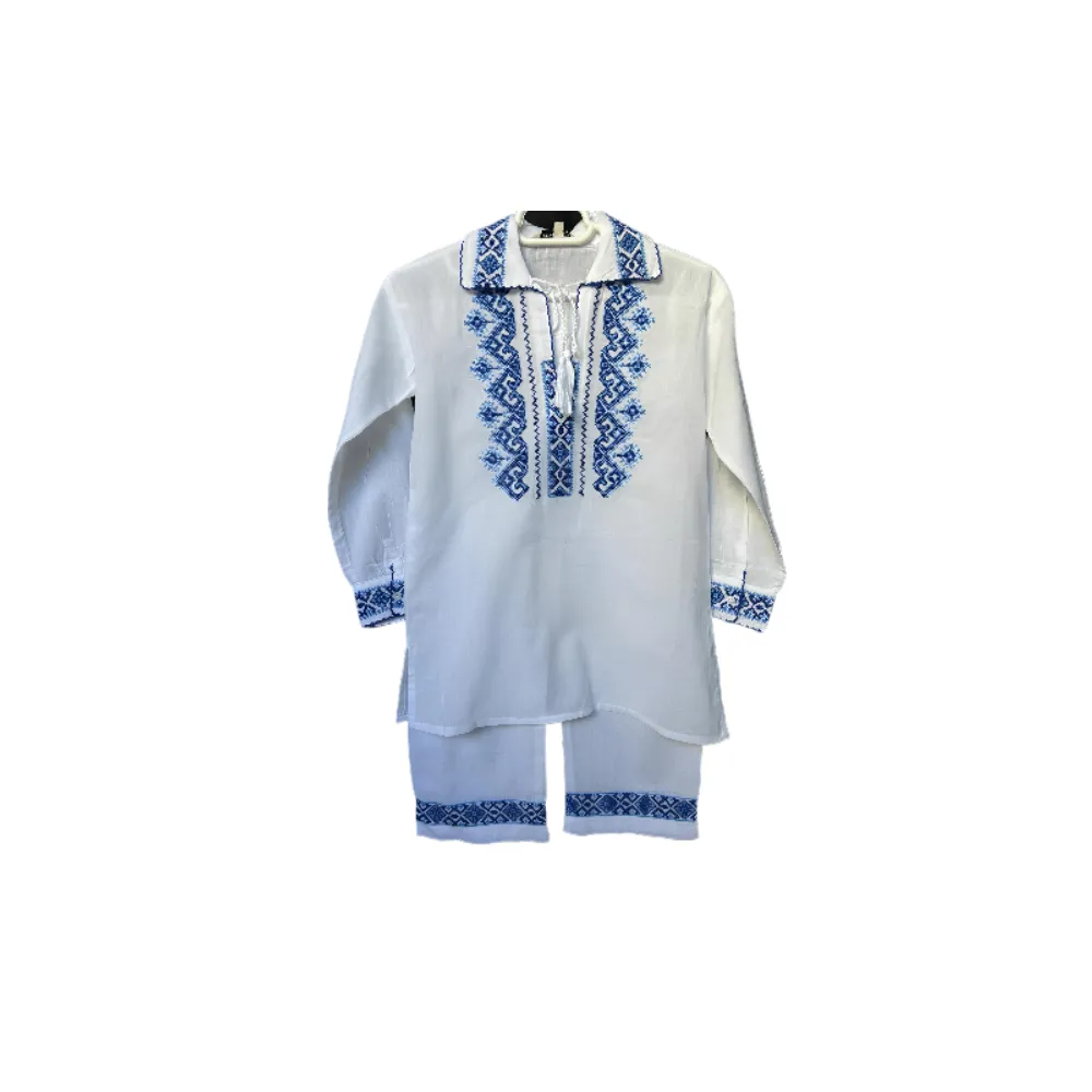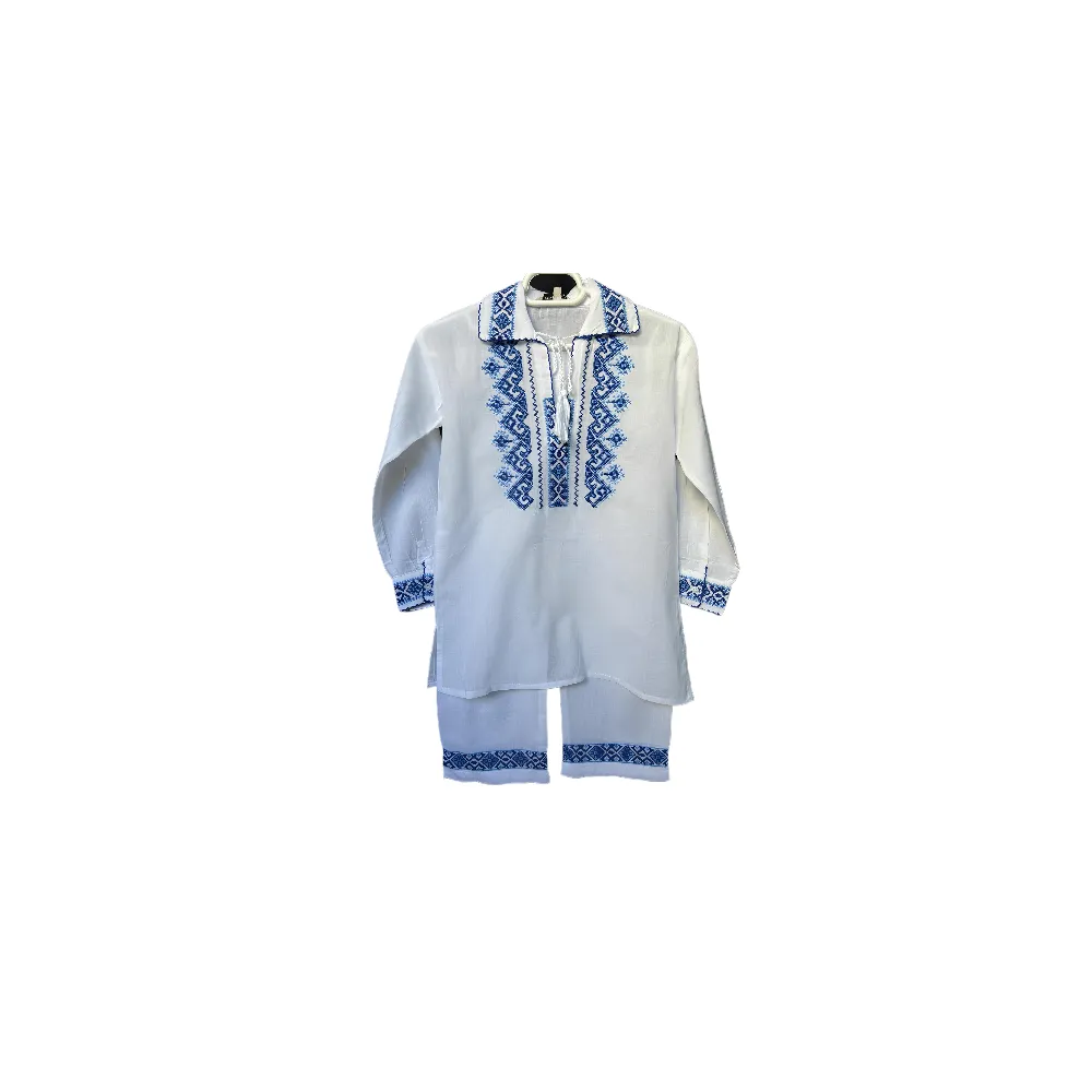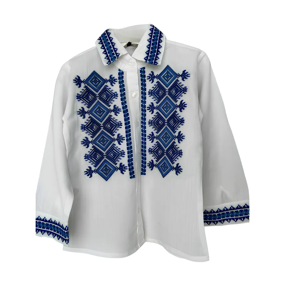 Camasa Traditionala de Baieti Alba cu Motiv Geometric Albastru - ITB28