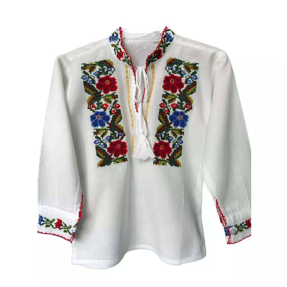 Camasa Traditionala de Baieti Alba cu Motiv Floral Multicolor - ITB34