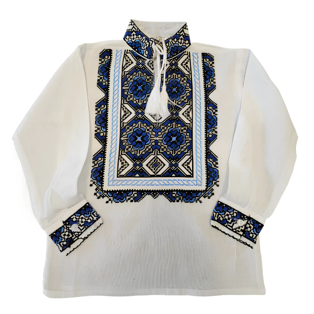 Camasa Traditionala de Baieti Alba cu Motiv Floral Albastru - ITB32