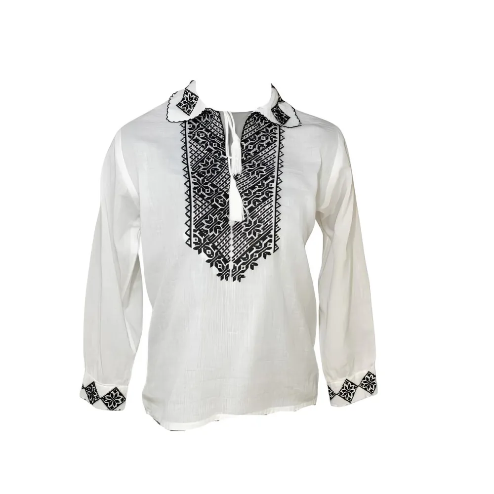 Camasa Traditionala de Baieti Alba cu Motiv Geometric Negru - ITB35