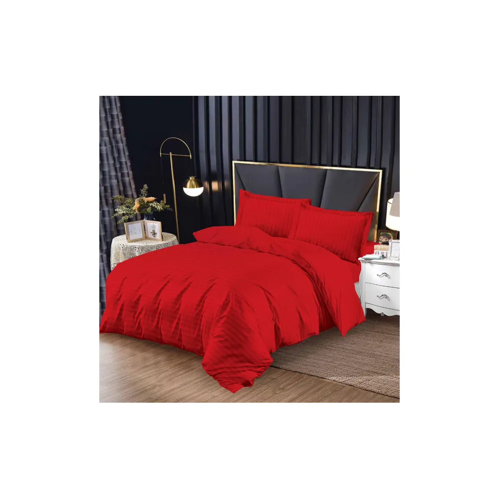 Lenjerie de Pat Dublu Bumbac Damasc 4 Piese cu Elastic, Rosu - SIPRA3-01