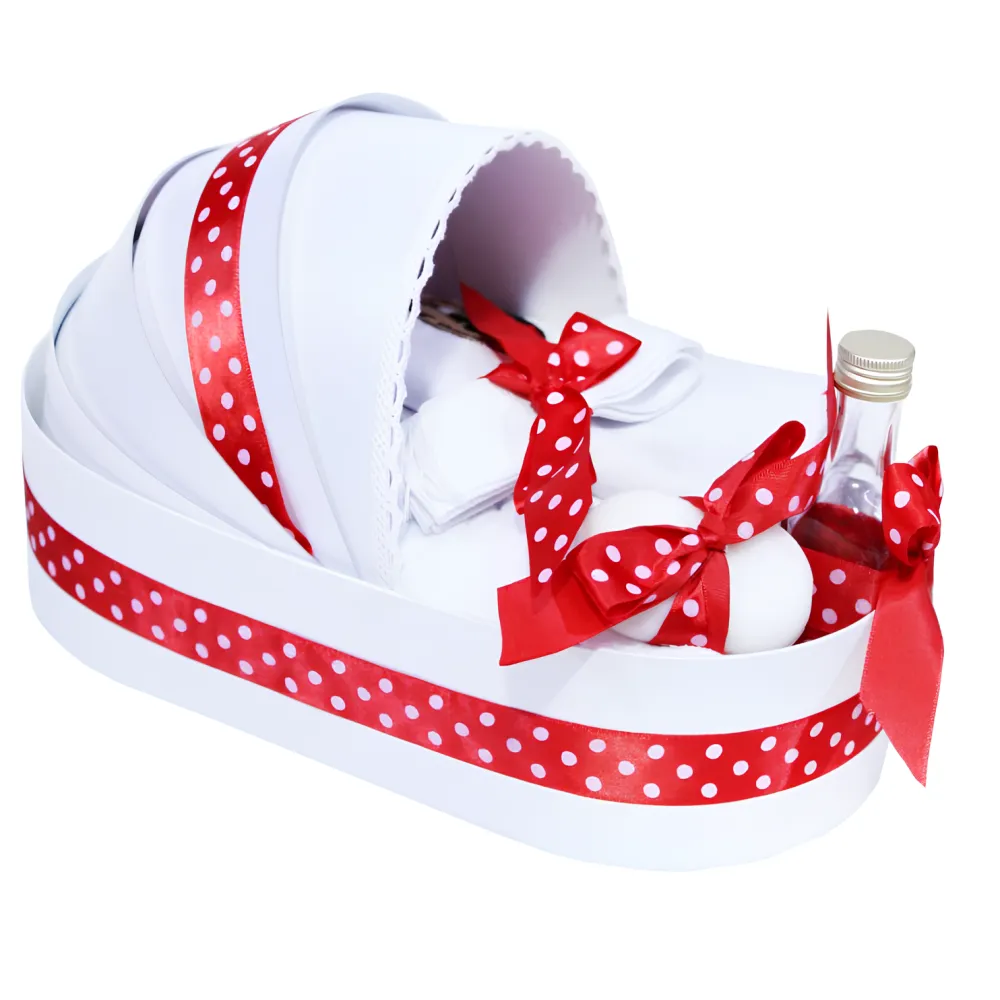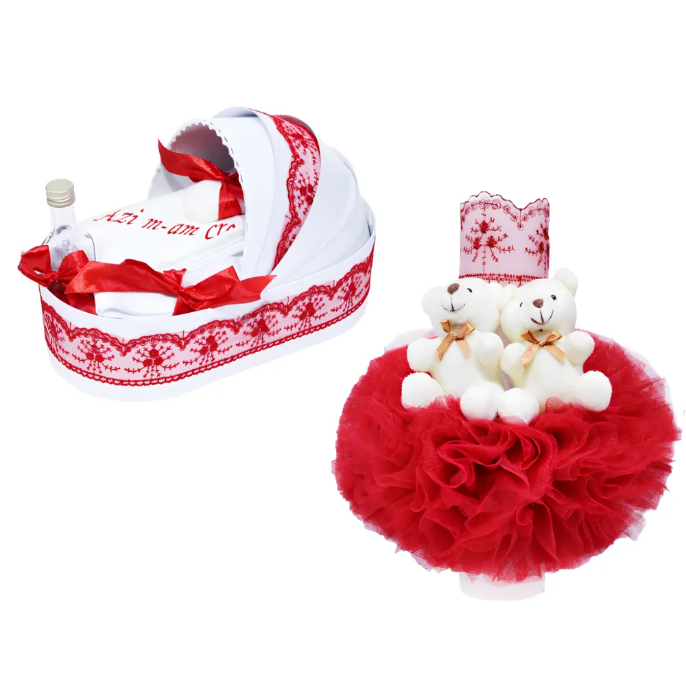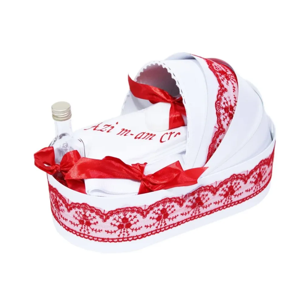 Trusou Botez tip Landou cu 6 piese - Alb-Rosu - Azi m-am crestinat - TBL03