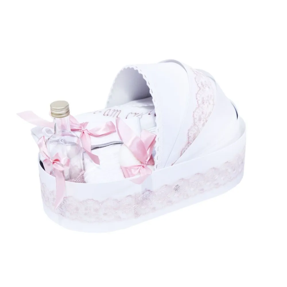 Trusou Botez tip Landou cu 6 piese - Alb-Roz - Azi m-am crestinat - TBL02