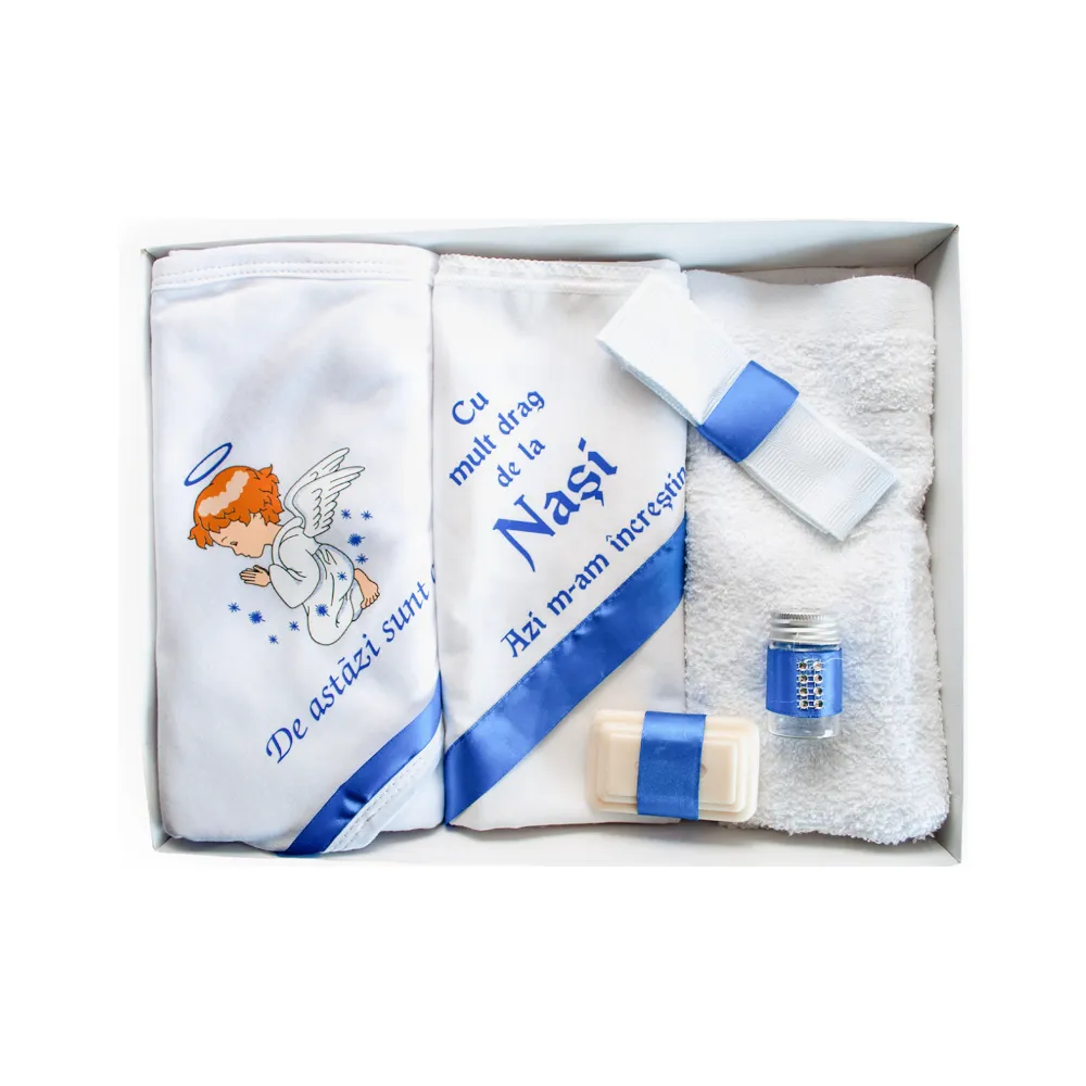 Trusou Botez 6 piese cu text imprimat ALBASTRU ELECTRIC - TB54