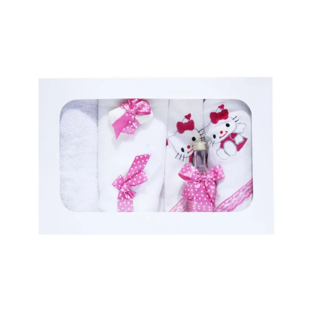 Trusou Botez cu 7 piese - Hello Kitty brodata - ALB - ROZ -TB72