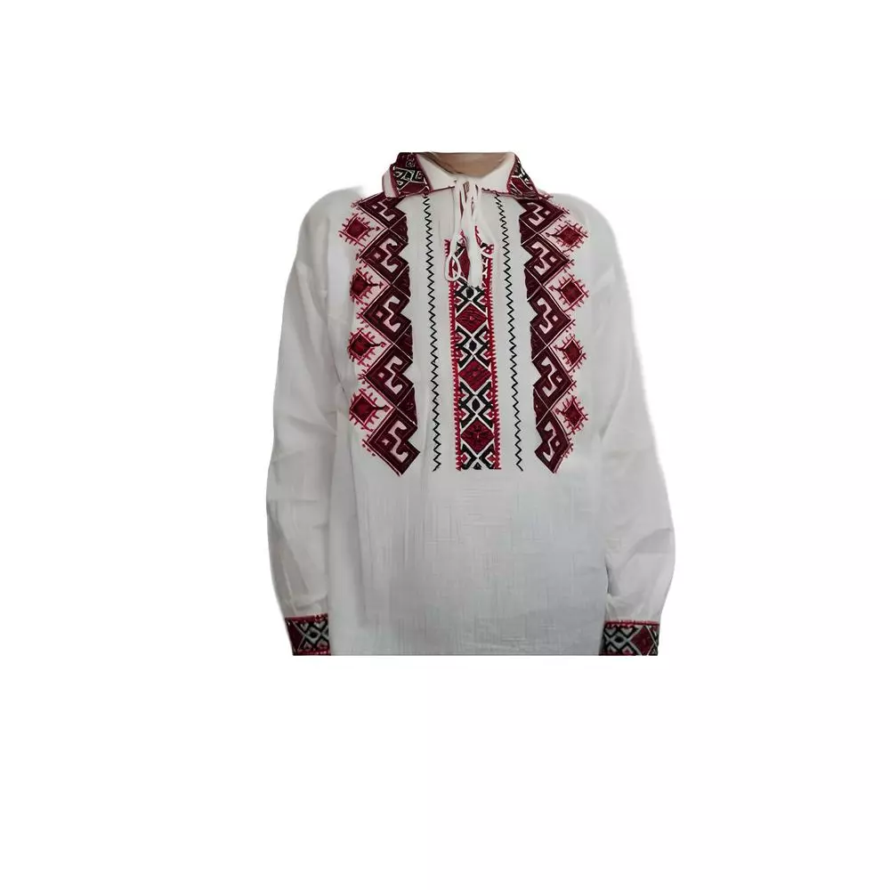 Camasa Barbateasca Traditionala Alba cu Motiv Geometric Rosu - CTI02