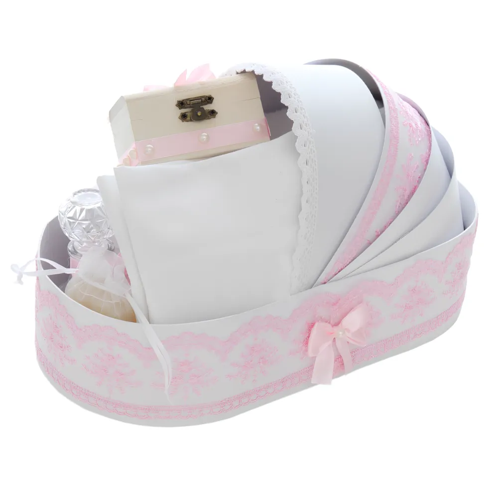 Trusou Botez tip Landou cu 8 piese - Alb-Roz Pudra - TBL11